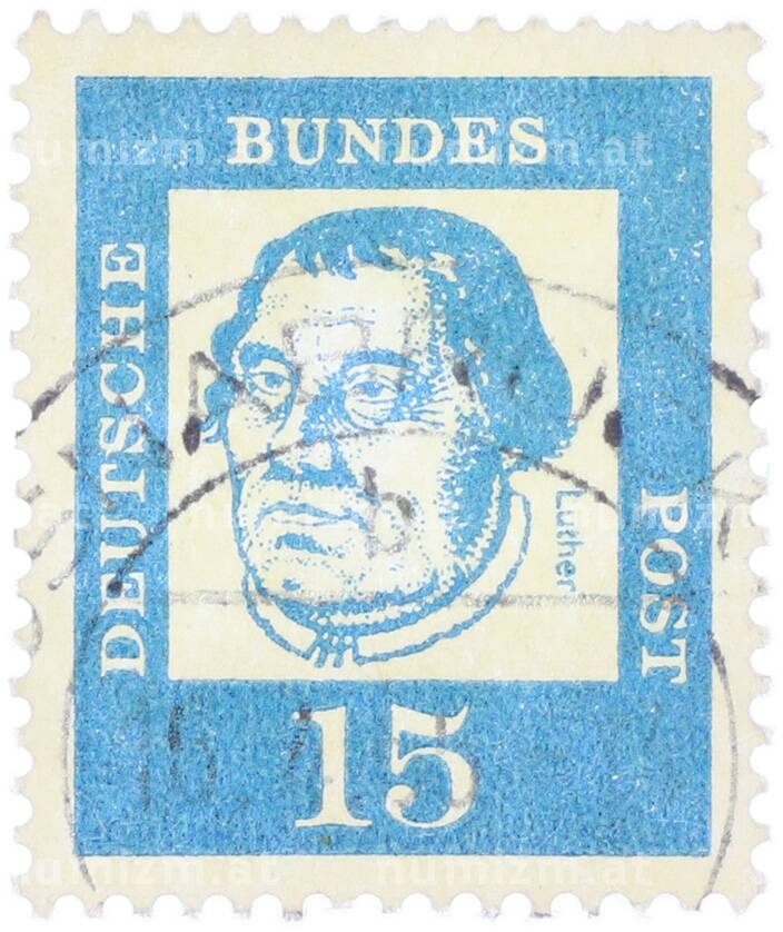 Почтовая марка 15 пфеннигов 1961 года Западная Германия (ФРГ) «Выдающиеся немцы — Мартин Лютер» (Артикул: T11-36779): подробные характеристики, качественные фотографии в высоком разрешении, низкая цена.