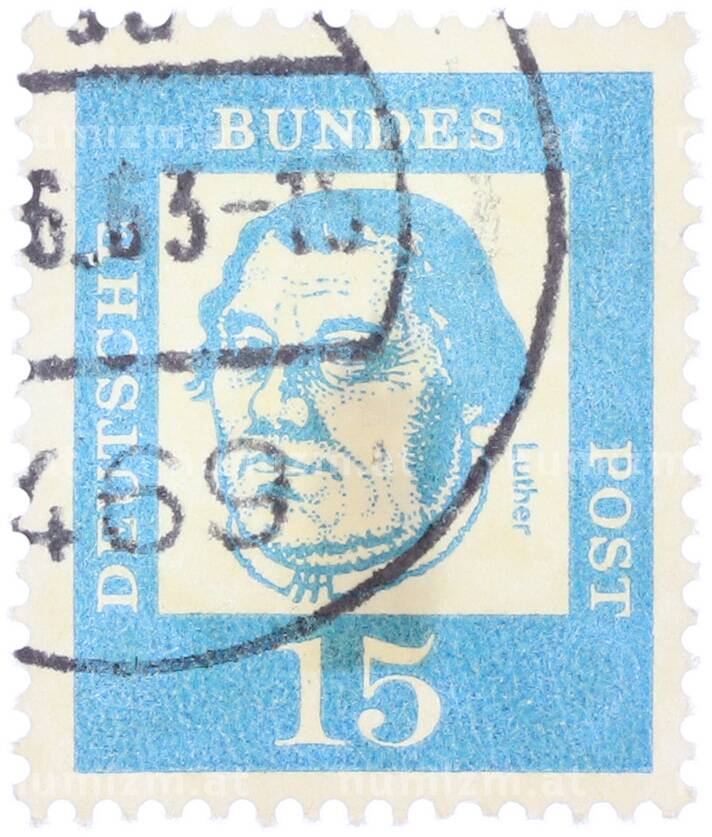 Почтовая марка 15 пфеннигов 1961 года Западная Германия (ФРГ) «Выдающиеся немцы — Мартин Лютер» (Артикул: T11-36782): подробные характеристики, качественные фотографии в высоком разрешении, низкая цена.