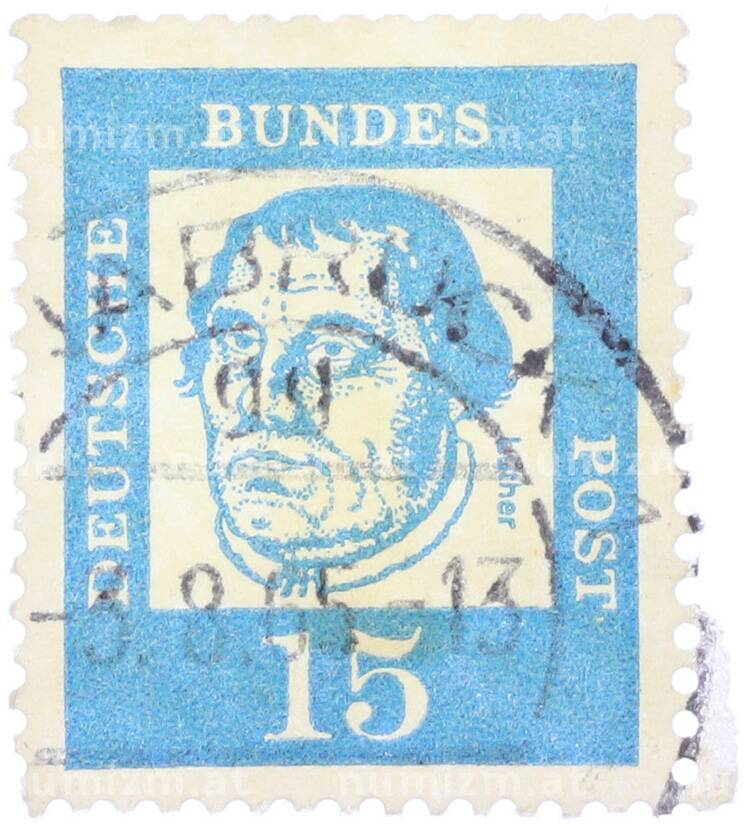 Почтовая марка 15 пфеннигов 1961 года Западная Германия (ФРГ) «Выдающиеся немцы — Мартин Лютер» (Артикул: T11-36788): подробные характеристики, качественные фотографии в высоком разрешении, низкая цена.