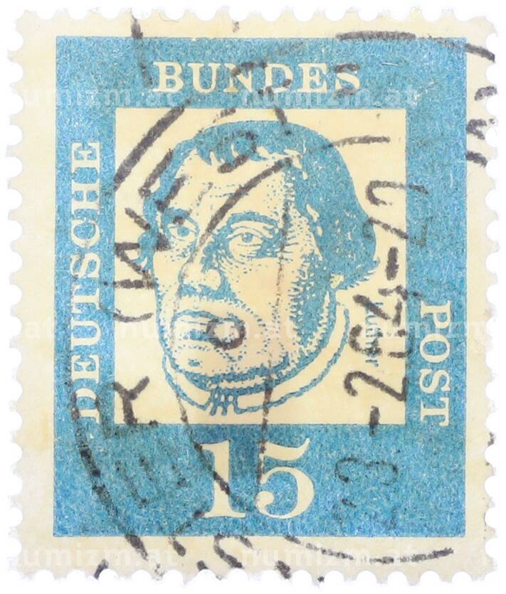 Почтовая марка 15 пфеннигов 1961 года Западная Германия (ФРГ) «Выдающиеся немцы — Мартин Лютер» (Артикул: T11-36791): подробные характеристики, качественные фотографии в высоком разрешении, низкая цена.