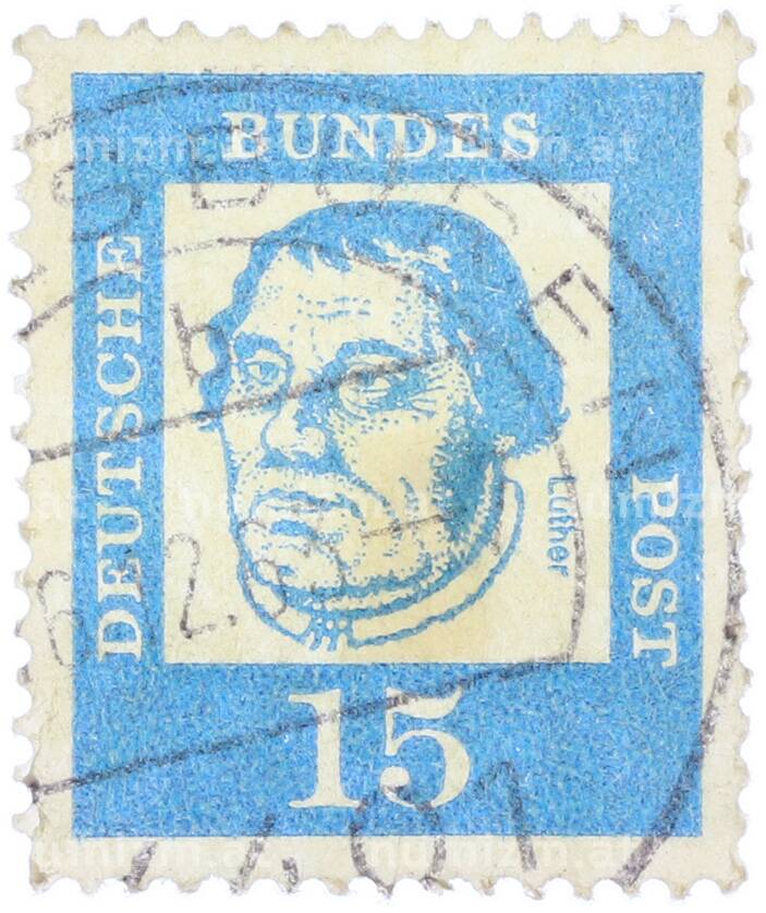 Почтовая марка 15 пфеннигов 1961 года Западная Германия (ФРГ) «Выдающиеся немцы — Мартин Лютер» (Артикул: T11-36796): подробные характеристики, качественные фотографии в высоком разрешении, низкая цена.