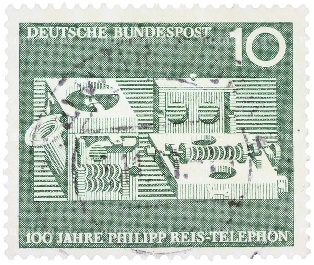 Купить Почтовая марка 10 пфеннигов 1961 года Западная Германия (ФРГ) «100-летие изобретения телефона Филиппом Рейсом» по привлекательной цене можно в нашем интернет-магазине — Вам достаточно оформить заказ на сайте. Все монеты, представленные в каталоге, находятся в наличии на нашем складе.