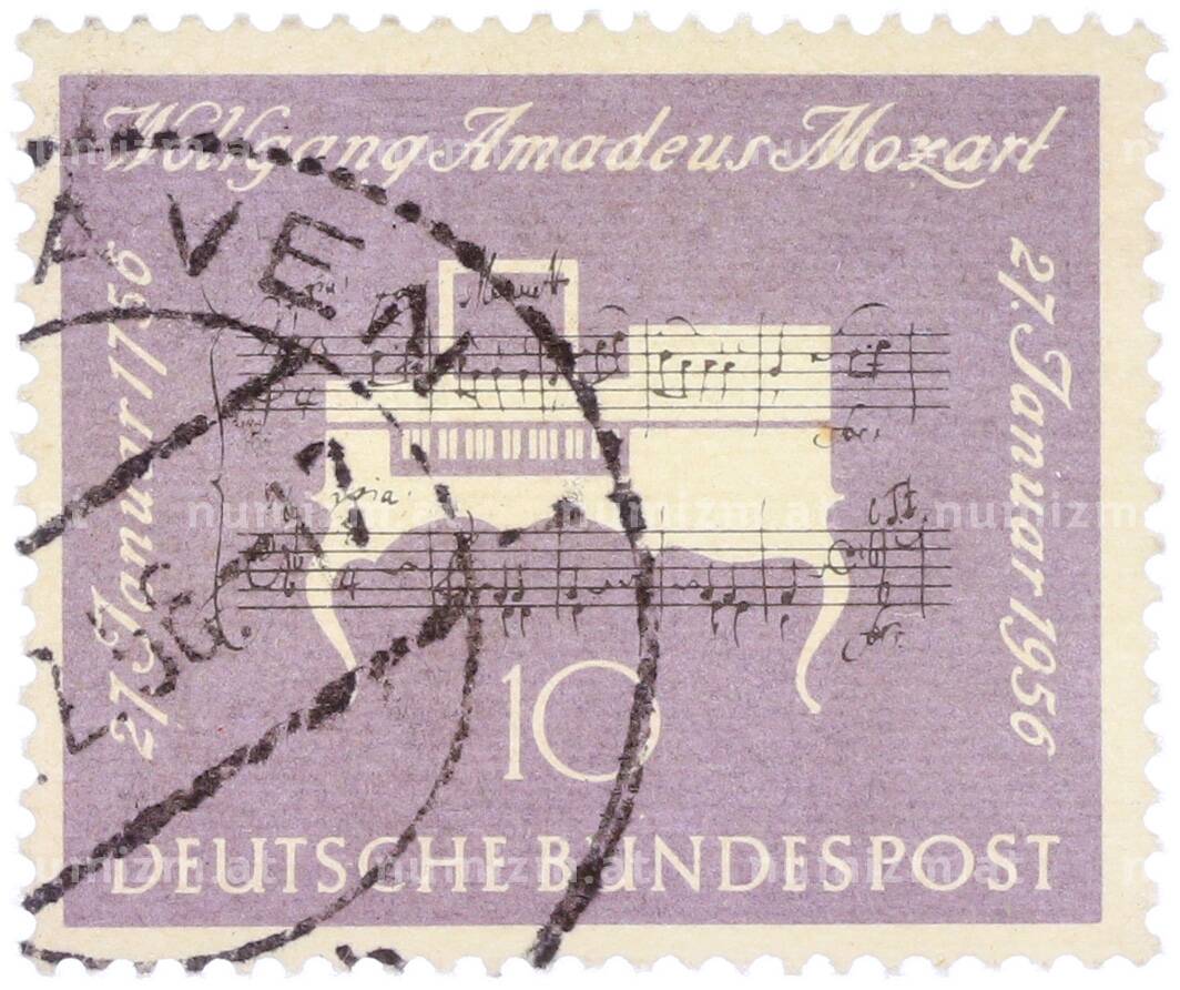 Почтовая марка 10 пфеннигов 1956 года Западная Германия (ФРГ) «200-летие со дня рождения Вольфганга Амадея Моцарта» (Артикул: T11-36906): подробные характеристики, качественные фотографии в высоком разрешении, низкая цена.