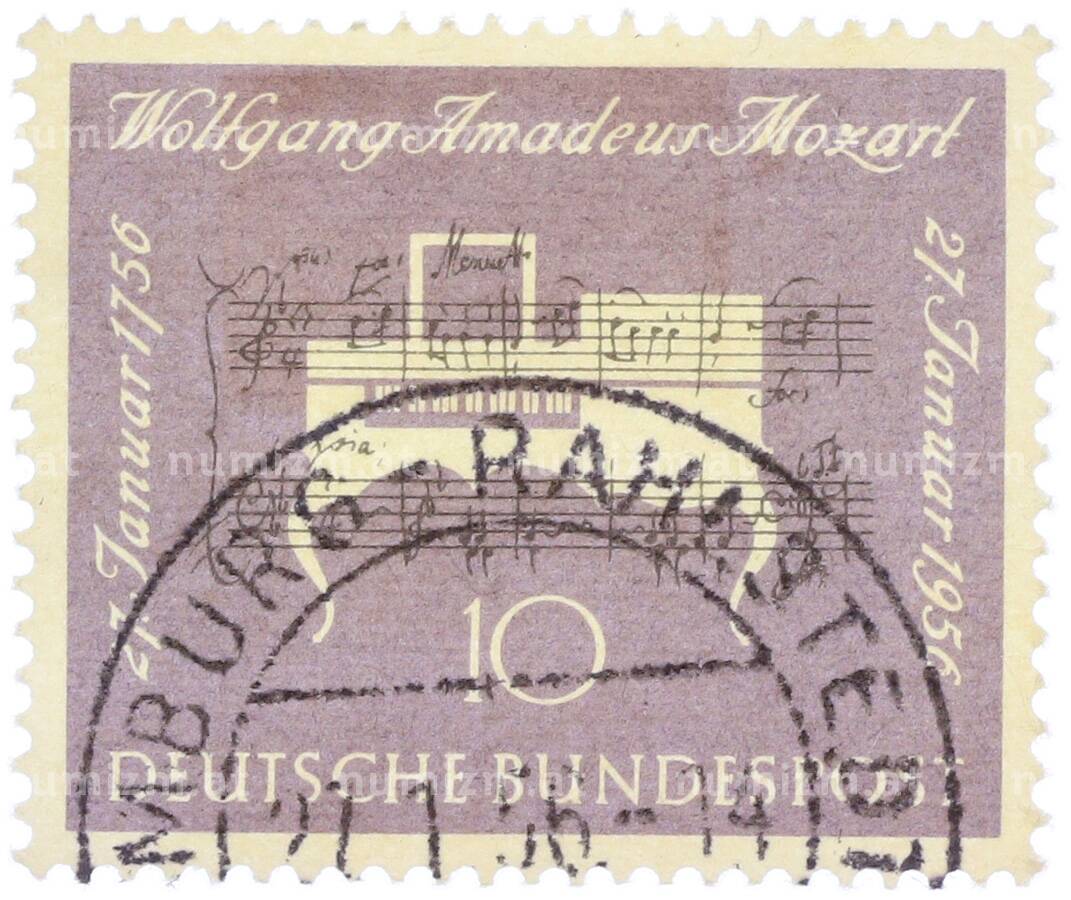 Почтовая марка 10 пфеннигов 1956 года Западная Германия (ФРГ) «200-летие со дня рождения Вольфганга Амадея Моцарта» (Артикул: T11-36907): подробные характеристики, качественные фотографии в высоком разрешении, низкая цена.