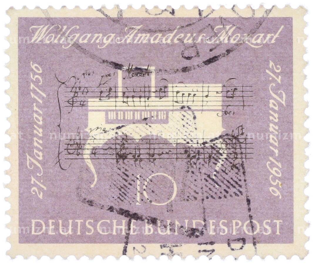 Почтовая марка 10 пфеннигов 1956 года Западная Германия (ФРГ) «200-летие со дня рождения Вольфганга Амадея Моцарта» (Артикул: T11-36914): подробные характеристики, качественные фотографии в высоком разрешении, низкая цена.