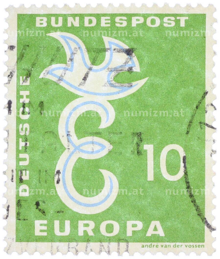 Почтовая марка 10 пфеннигов 1958 года Западная Германия (ФРГ) «Европейская конференция администраций почтовых служб и служб связи CEPT — Голубь мира» (Артикул: T11-36922): подробные характеристики, качественные фотографии в высоком разрешении, низкая цена.