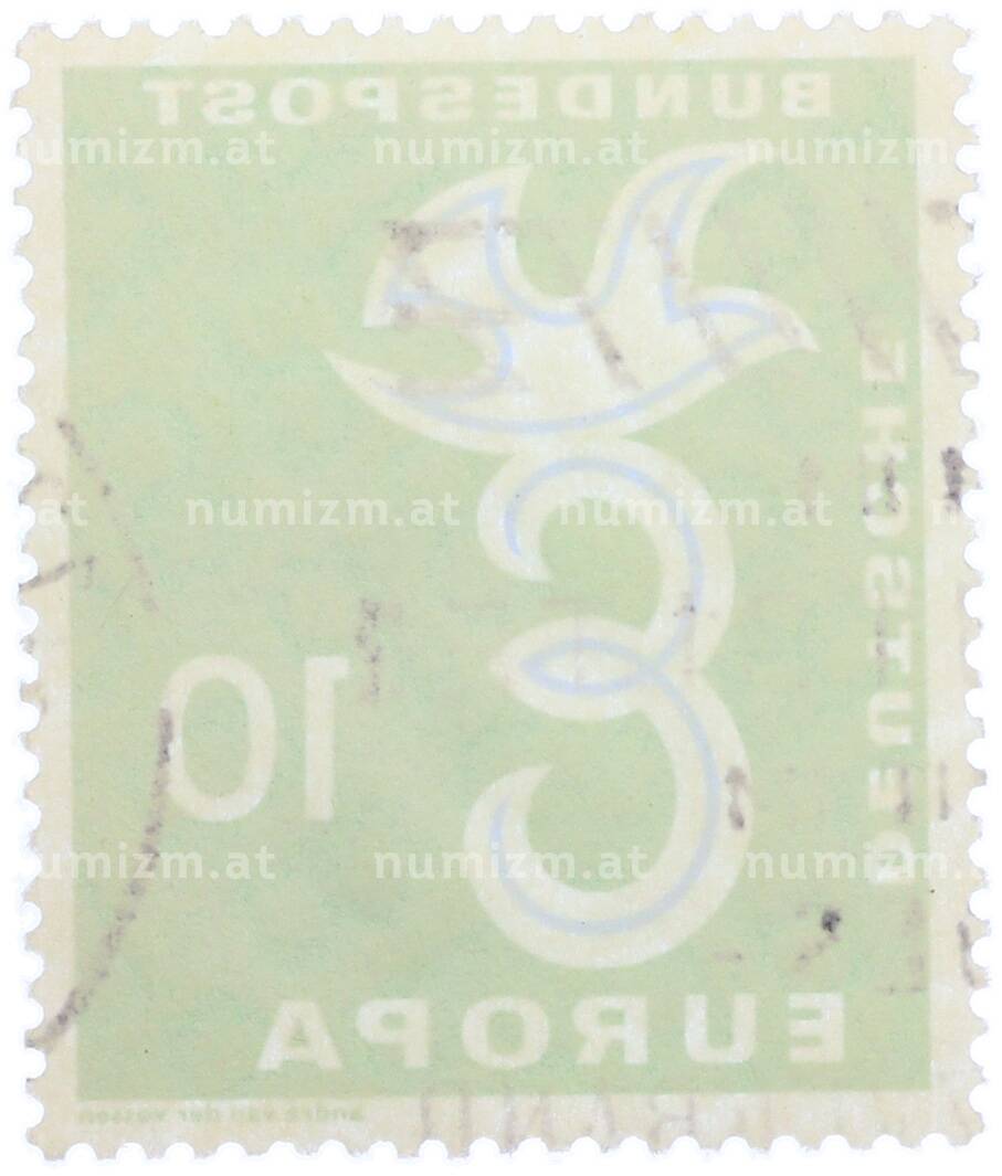 Интернет магазин «Нумизмат» предлагает приобрести Почтовая марка 10 пфеннигов 1958 года Западная Германия (ФРГ) «Европейская конференция администраций почтовых служб и служб связи CEPT — Голубь мира».