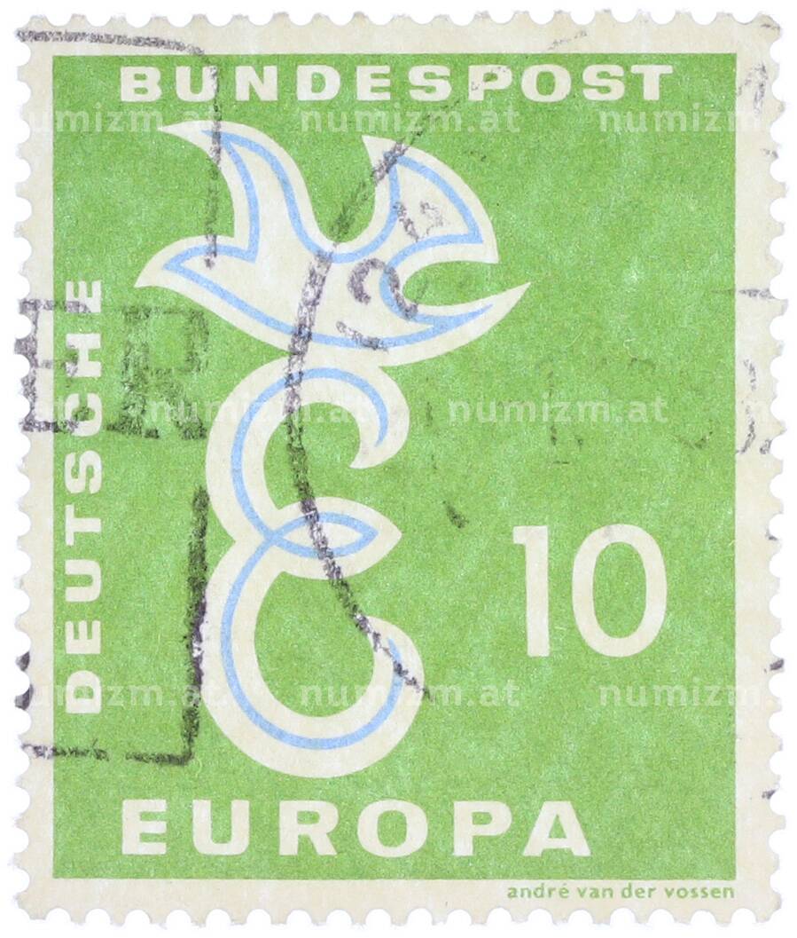 Почтовая марка 10 пфеннигов 1958 года Западная Германия (ФРГ) «Европейская конференция администраций почтовых служб и служб связи CEPT — Голубь мира» (Артикул: T11-36923): подробные характеристики, качественные фотографии в высоком разрешении, низкая цена.