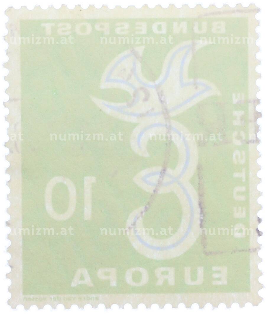Интернет магазин «Нумизмат» предлагает приобрести Почтовая марка 10 пфеннигов 1958 года Западная Германия (ФРГ) «Европейская конференция администраций почтовых служб и служб связи CEPT — Голубь мира».
