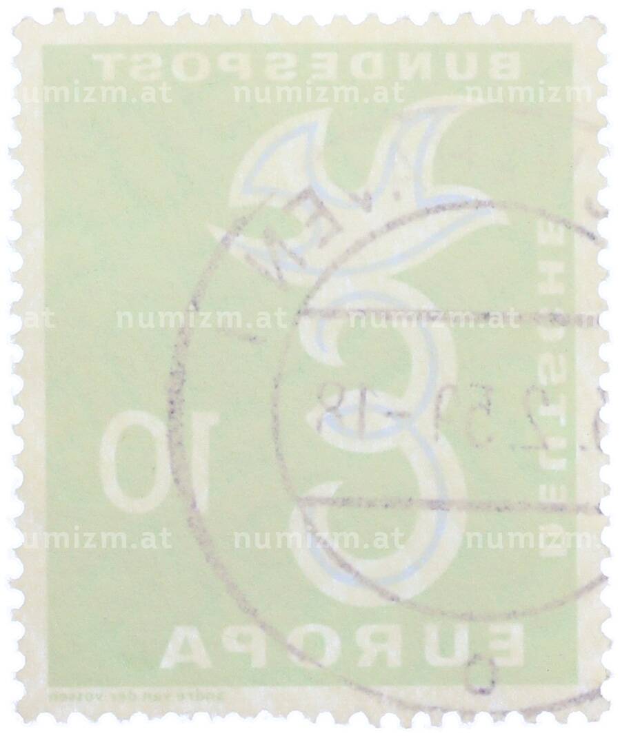 Интернет магазин «Нумизмат» предлагает приобрести Почтовая марка 10 пфеннигов 1958 года Западная Германия (ФРГ) «Европейская конференция администраций почтовых служб и служб связи CEPT — Голубь мира».