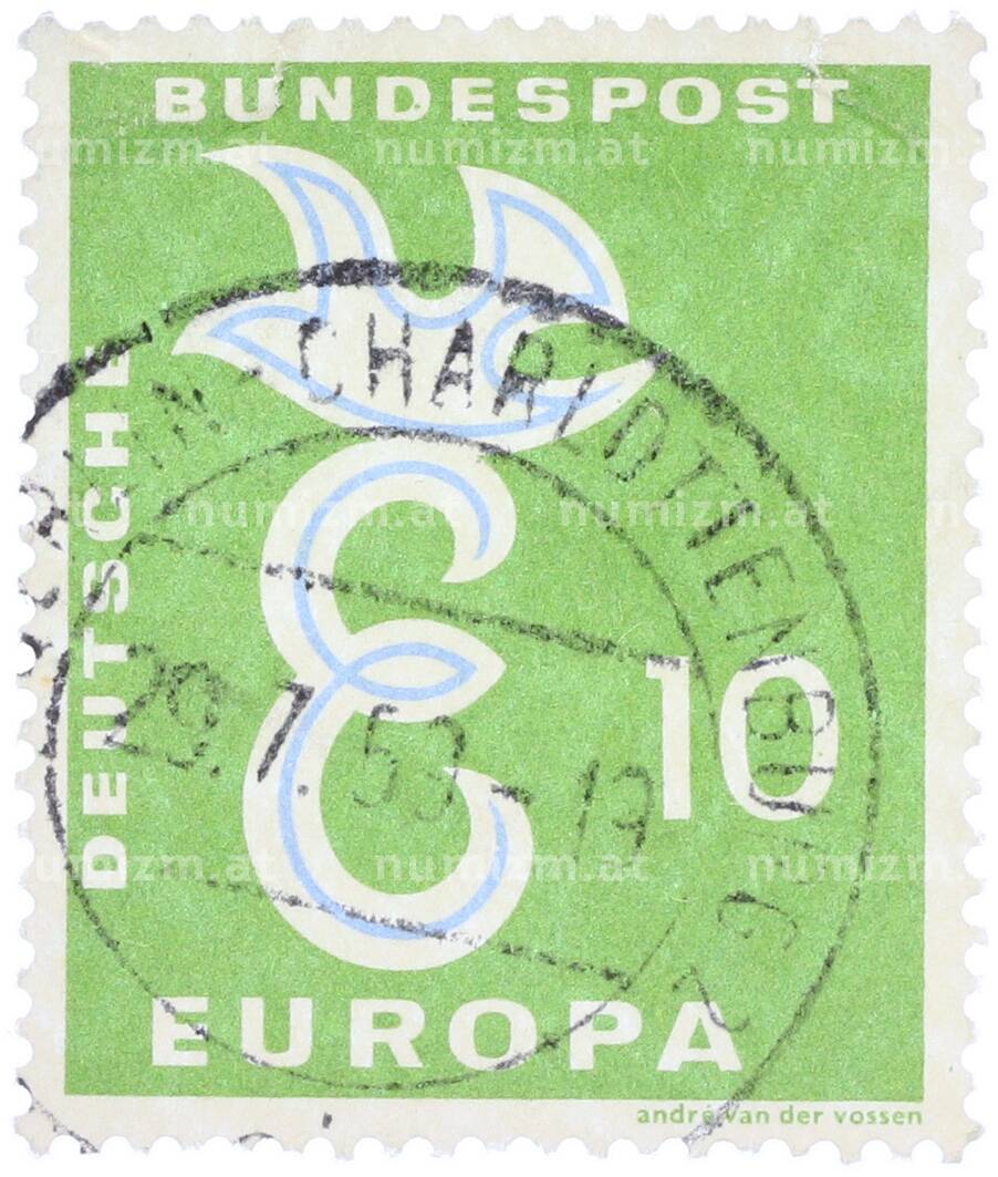 Почтовая марка 10 пфеннигов 1958 года Западная Германия (ФРГ) «Европейская конференция администраций почтовых служб и служб связи CEPT — Голубь мира» (Артикул: T11-36930): подробные характеристики, качественные фотографии в высоком разрешении, низкая цена.