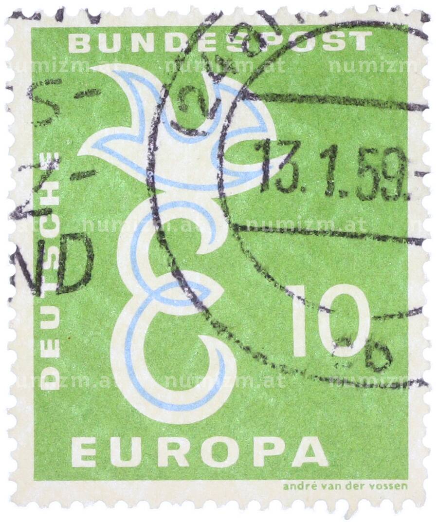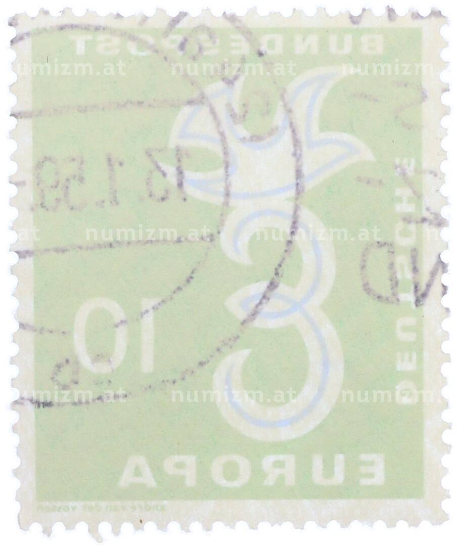 Интернет магазин «Нумизмат» предлагает приобрести Почтовая марка 10 пфеннигов 1958 года Западная Германия (ФРГ) «Европейская конференция администраций почтовых служб и служб связи CEPT — Голубь мира».