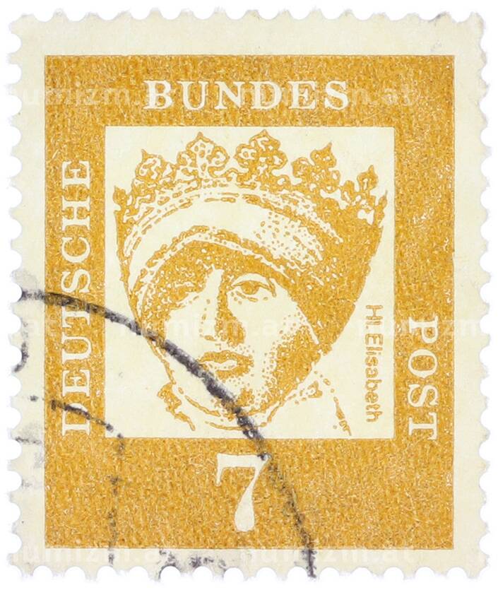 Почтовая марка 7 пфеннигов 1961 года Западная Германия (ФРГ) «Выдающиеся немцы — Елизавета Венгерская» (Артикул: T11-36994): подробные характеристики, качественные фотографии в высоком разрешении, низкая цена.