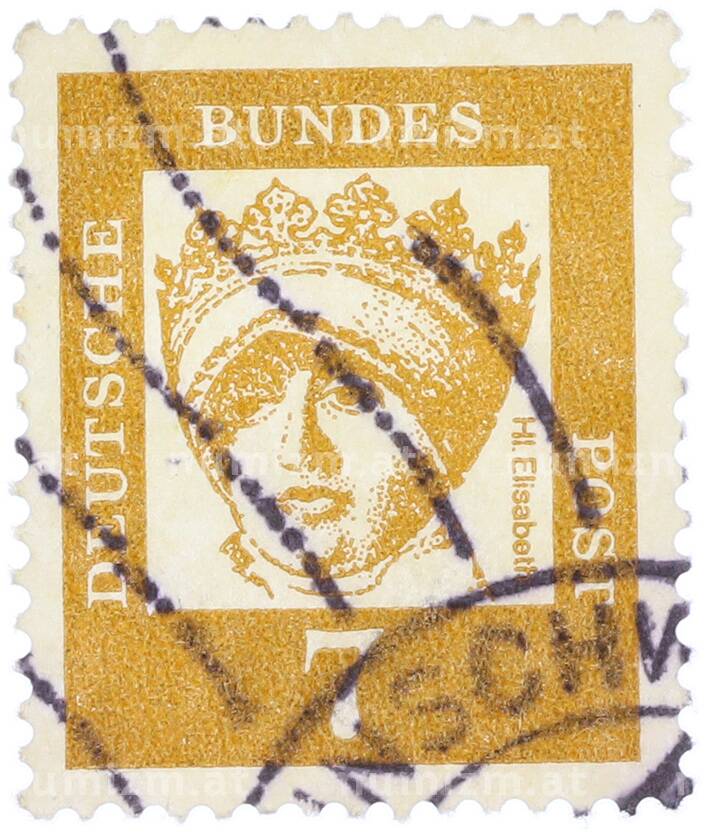 Купить Почтовая марка 7 пфеннигов 1961 года Западная Германия (ФРГ) «Выдающиеся немцы — Елизавета Венгерская» по привлекательной цене можно в нашем интернет-магазине — Вам достаточно оформить заказ на сайте. Все монеты, представленные в каталоге, находятся в наличии на нашем складе.