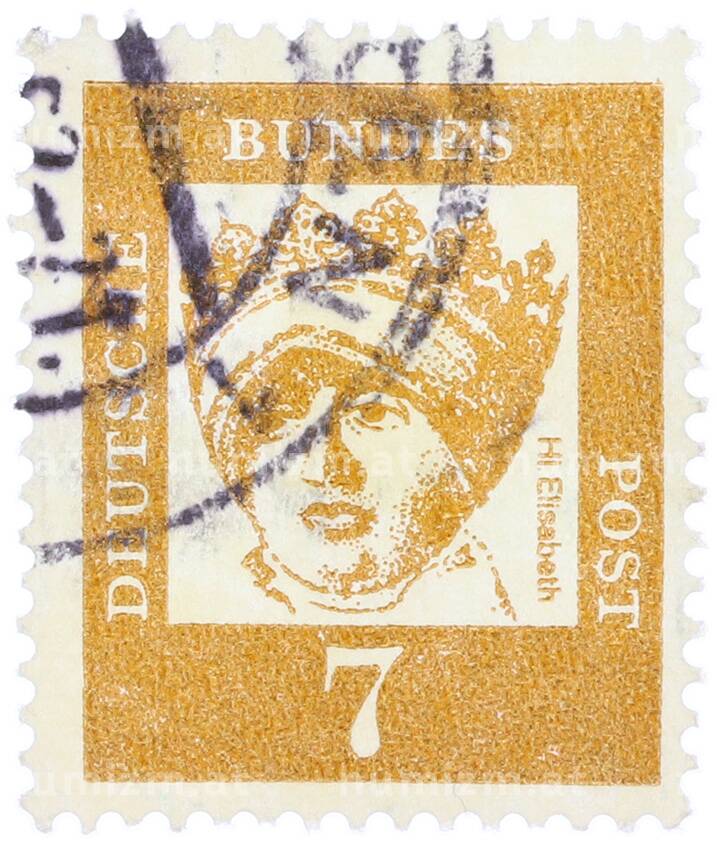 Почтовая марка 7 пфеннигов 1961 года Западная Германия (ФРГ) «Выдающиеся немцы — Елизавета Венгерская» (Артикул: T11-36999): подробные характеристики, качественные фотографии в высоком разрешении, низкая цена.