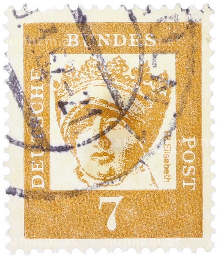 Купить Почтовая марка 7 пфеннигов 1961 года Западная Германия (ФРГ) «Выдающиеся немцы — Елизавета Венгерская» по привлекательной цене можно в нашем интернет-магазине — Вам достаточно оформить заказ на сайте. Все монеты, представленные в каталоге, находятся в наличии на нашем складе.