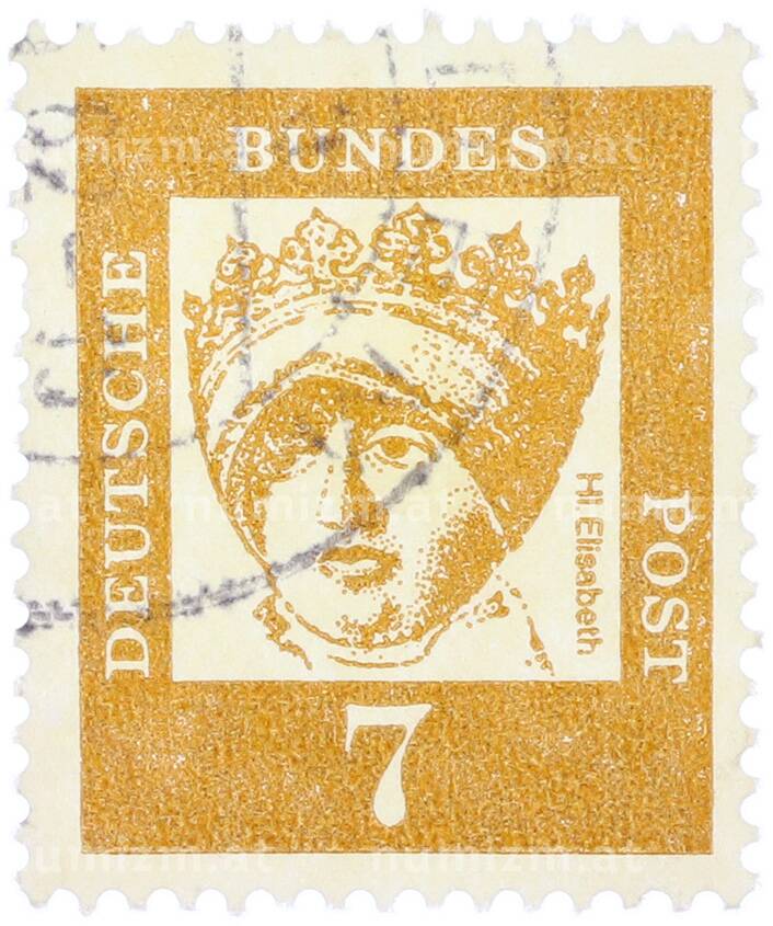 Почтовая марка 7 пфеннигов 1961 года Западная Германия (ФРГ) «Выдающиеся немцы — Елизавета Венгерская» [Артикул: T11-37002]