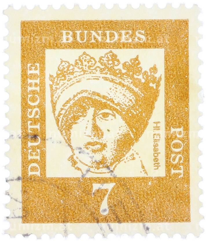 Почтовая марка 7 пфеннигов 1961 года Западная Германия (ФРГ) «Выдающиеся немцы — Елизавета Венгерская» (Артикул: T11-37003): подробные характеристики, качественные фотографии в высоком разрешении, низкая цена.