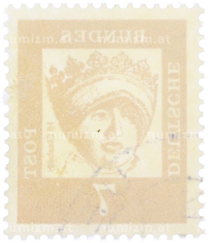 Купить Почтовая марка 7 пфеннигов 1961 года Западная Германия (ФРГ) «Выдающиеся немцы — Елизавета Венгерская» по привлекательной цене можно в нашем интернет-магазине — Вам достаточно оформить заказ на сайте. Все монеты, представленные в каталоге, находятся в наличии на нашем складе.