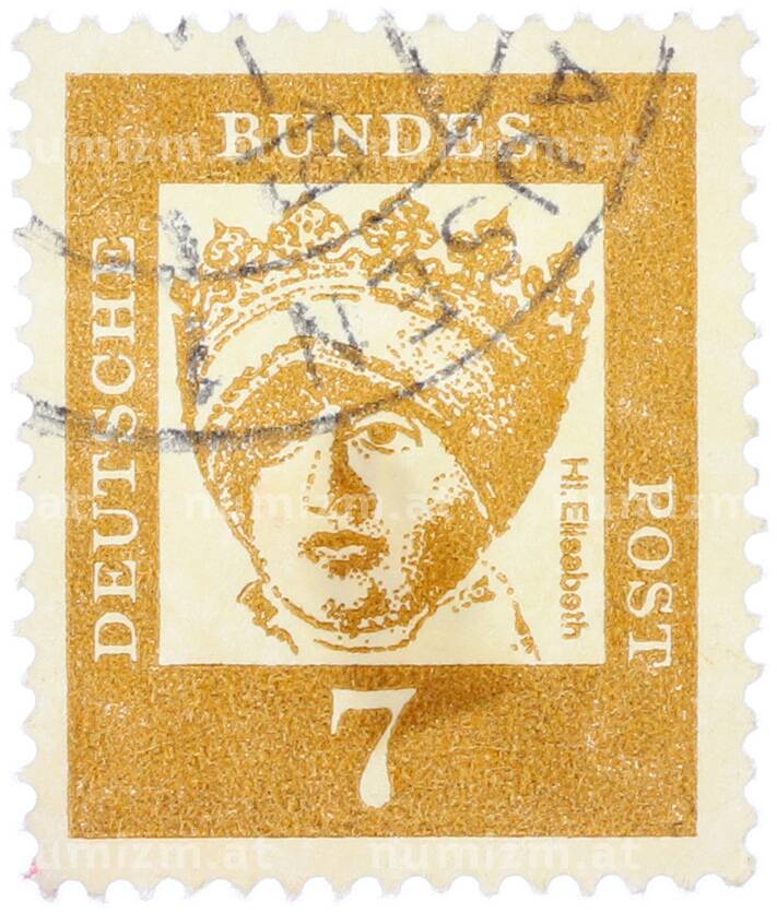 Купить Почтовая марка 7 пфеннигов 1961 года Западная Германия (ФРГ) «Выдающиеся немцы — Елизавета Венгерская» по привлекательной цене можно в нашем интернет-магазине — Вам достаточно оформить заказ на сайте. Все монеты, представленные в каталоге, находятся в наличии на нашем складе.