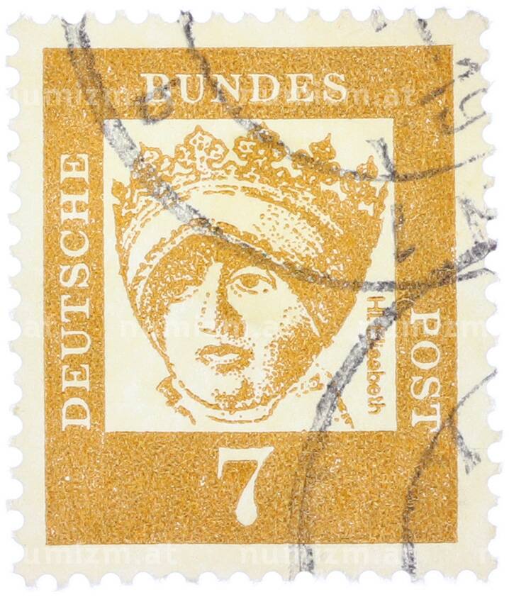 Купить Почтовая марка 7 пфеннигов 1961 года Западная Германия (ФРГ) «Выдающиеся немцы — Елизавета Венгерская» по привлекательной цене можно в нашем интернет-магазине — Вам достаточно оформить заказ на сайте. Все монеты, представленные в каталоге, находятся в наличии на нашем складе.