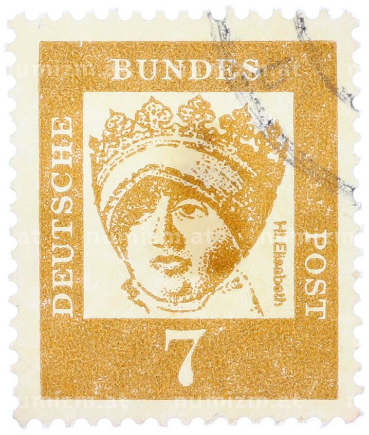 Почтовая марка 7 пфеннигов 1961 года Западная Германия (ФРГ) «Выдающиеся немцы — Елизавета Венгерская» (Артикул: T11-37008): подробные характеристики, качественные фотографии в высоком разрешении, низкая цена.