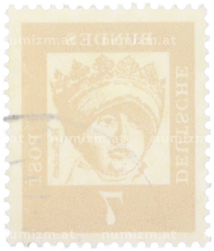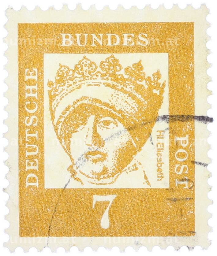 Купить Почтовая марка 7 пфеннигов 1961 года Западная Германия (ФРГ) «Выдающиеся немцы — Елизавета Венгерская» по привлекательной цене можно в нашем интернет-магазине — Вам достаточно оформить заказ на сайте. Все монеты, представленные в каталоге, находятся в наличии на нашем складе.