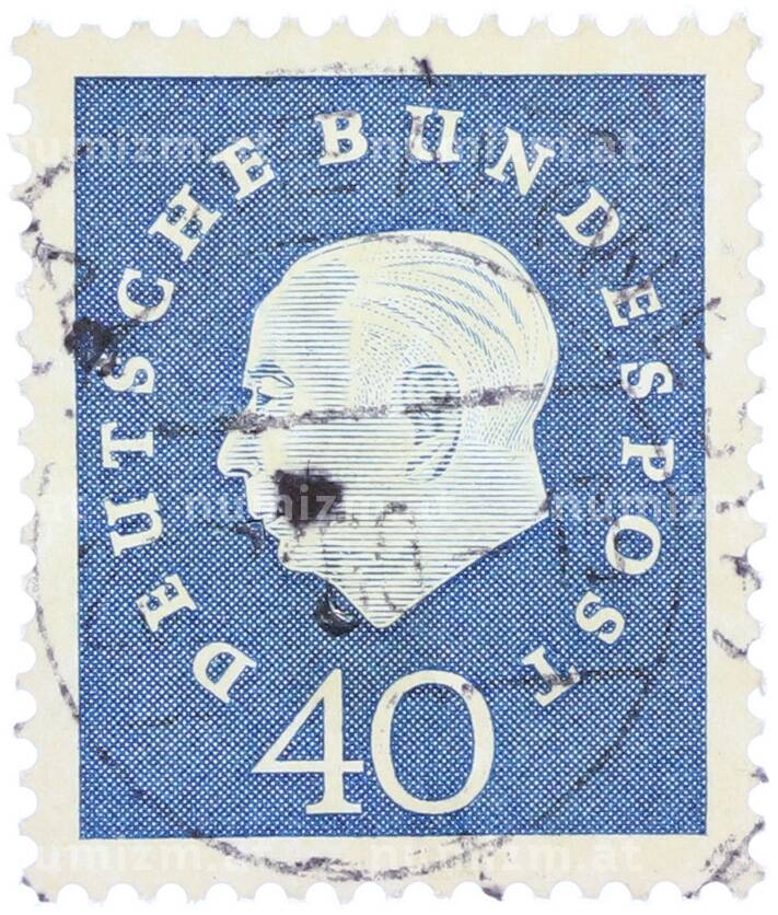 Купить Почтовая марка 40 пфеннигов 1959 года Западная Германия (ФРГ) «Теодор Хойс» по привлекательной цене можно в нашем интернет-магазине — Вам достаточно оформить заказ на сайте. Все монеты, представленные в каталоге, находятся в наличии на нашем складе.