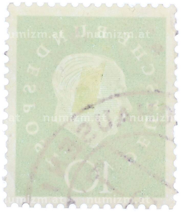 20.01.2025Интернет магазин «Нумизмат» предлагает приобрести Почтовая марка 10 пфеннигов 1959 года Западная германия (ФРГ) «Теодор Хойс».