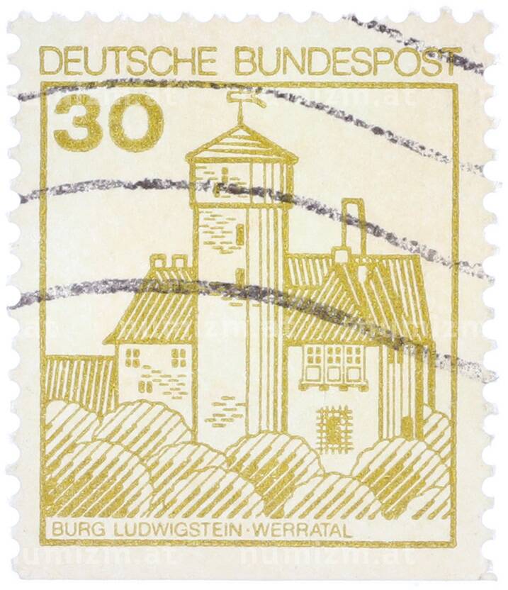 Почтовая марка 30 пфеннигов 1977 года Западная Германия (ФРГ) «Крепости и замки — Замок Людвигштейн» (Артикул: T11-37123): подробные характеристики, качественные фотографии в высоком разрешении, низкая цена.