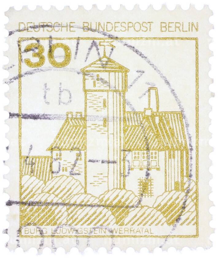 Почтовая марка 30 пфеннигов 1977 года Западная Германия (ФРГ) «Крепости и замки — Замок Людвигштейн» (Артикул: T11-37124): подробные характеристики, качественные фотографии в высоком разрешении, низкая цена.