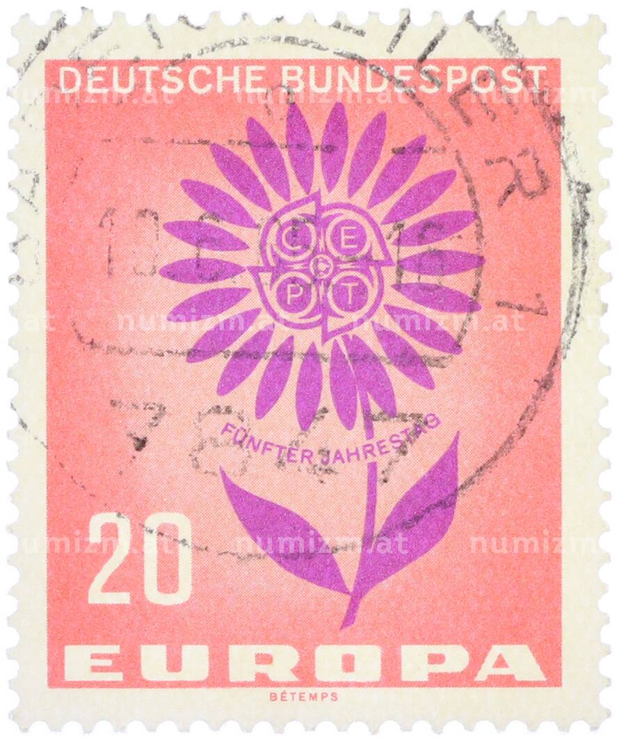 Почтовая марка 20 пфеннигов 1964 года Западная Германия (ФРГ) «Европейская конференция администраций почтовых служб и служб связи CEPT — Цветок» (Артикул: T11-37270): подробные характеристики, качественные фотографии в высоком разрешении, низкая цена.