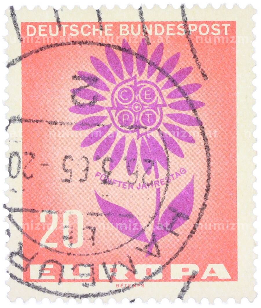Купить Почтовая марка 20 пфеннигов 1964 года Западная Германия (ФРГ) «Европейская конференция администраций почтовых служб и служб связи CEPT — Цветок» по привлекательной цене можно в нашем интернет-магазине — Вам достаточно оформить заказ на сайте. Все монеты, представленные в каталоге, находятся в наличии на нашем складе.