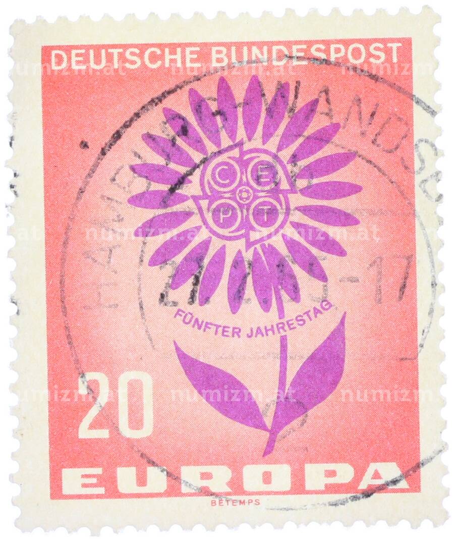 Почтовая марка 20 пфеннигов 1964 года Западная Германия (ФРГ) «Европейская конференция администраций почтовых служб и служб связи CEPT — Цветок» (Артикул: T11-37272): подробные характеристики, качественные фотографии в высоком разрешении, низкая цена.