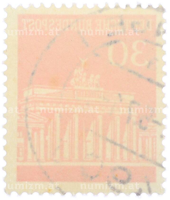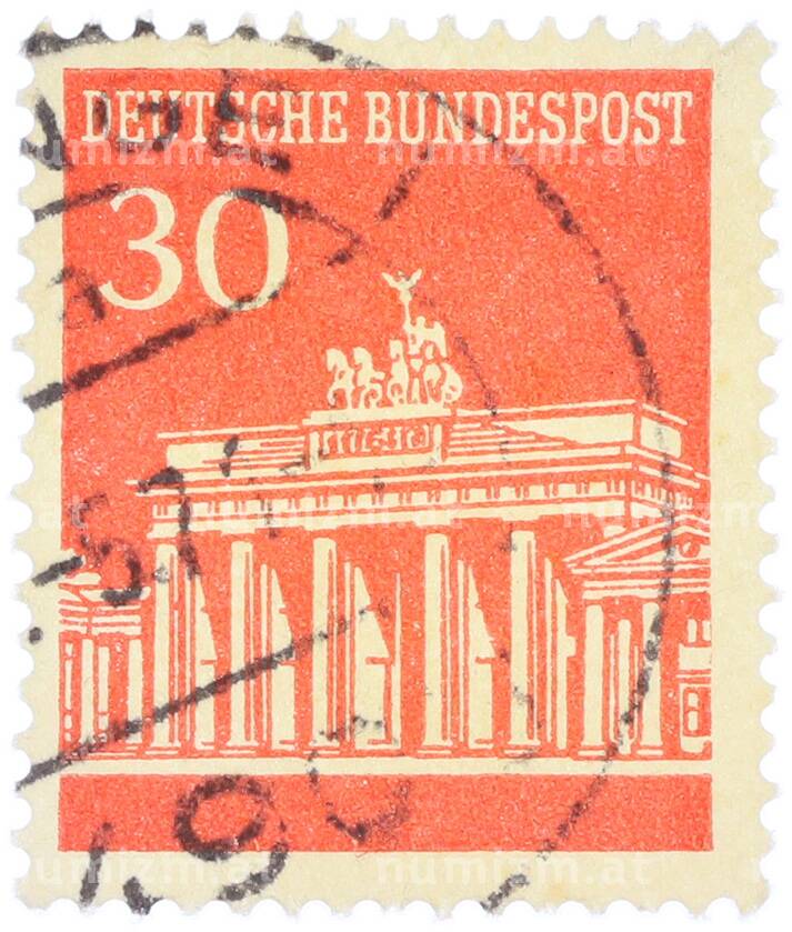 Почтовая марка 30 пфеннигов 1966 года Западная Германия (ФРГ) «Бранденбургские ворота» (Артикул: T11-37394): подробные характеристики, качественные фотографии в высоком разрешении, низкая цена.