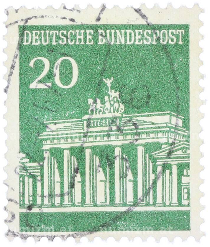 Почтовая марка 20 пфеннигов 1966 года Западная Германия (ФРГ) «Бранденбургские ворота» (Артикул: T11-37401): подробные характеристики, качественные фотографии в высоком разрешении, низкая цена.
