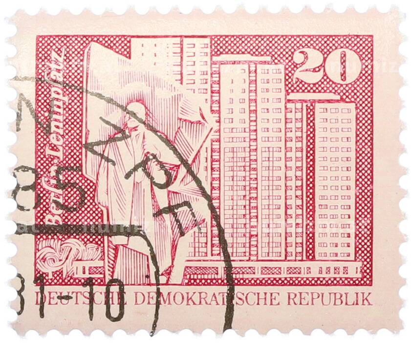 Почтовая марка 20 пфеннигов 1973 года Восточная Германия (ГДР) «Площадь Ленина в Берлине» (Артикул: T11-37412): подробные характеристики, качественные фотографии в высоком разрешении, низкая цена.