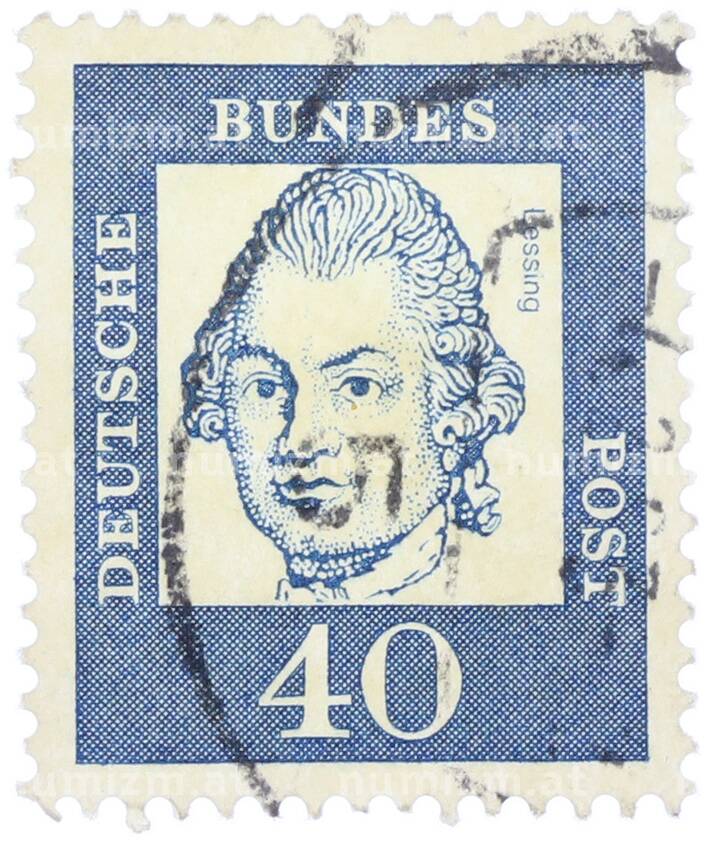 Почтовая марка 40 пфеннигов 1961 года Западная Германия (ФРГ) «Выдающиеся немцы — Готхольд Эфраим Лессинг» (Артикул: T11-37483): подробные характеристики, качественные фотографии в высоком разрешении, низкая цена.