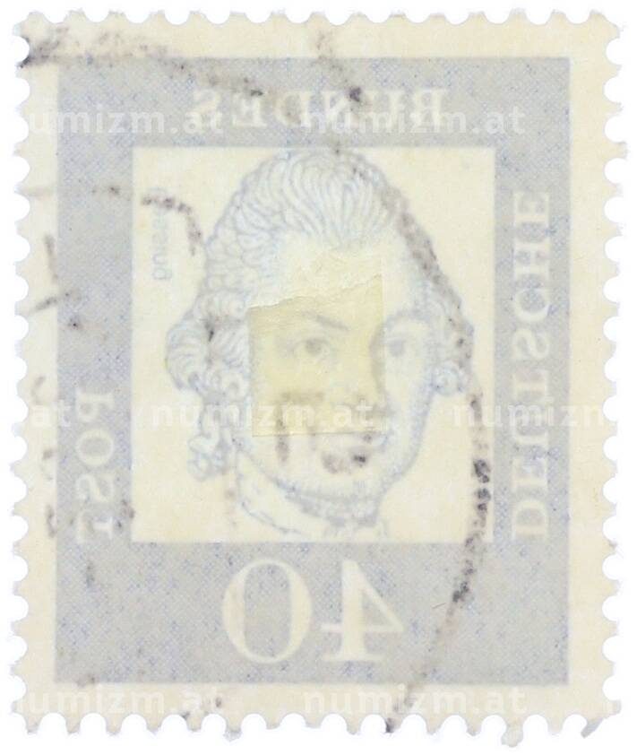 Интернет магазин «Нумизмат» предлагает приобрести Почтовая марка 40 пфеннигов 1961 года Западная Германия (ФРГ) «Выдающиеся немцы — Готхольд Эфраим Лессинг».