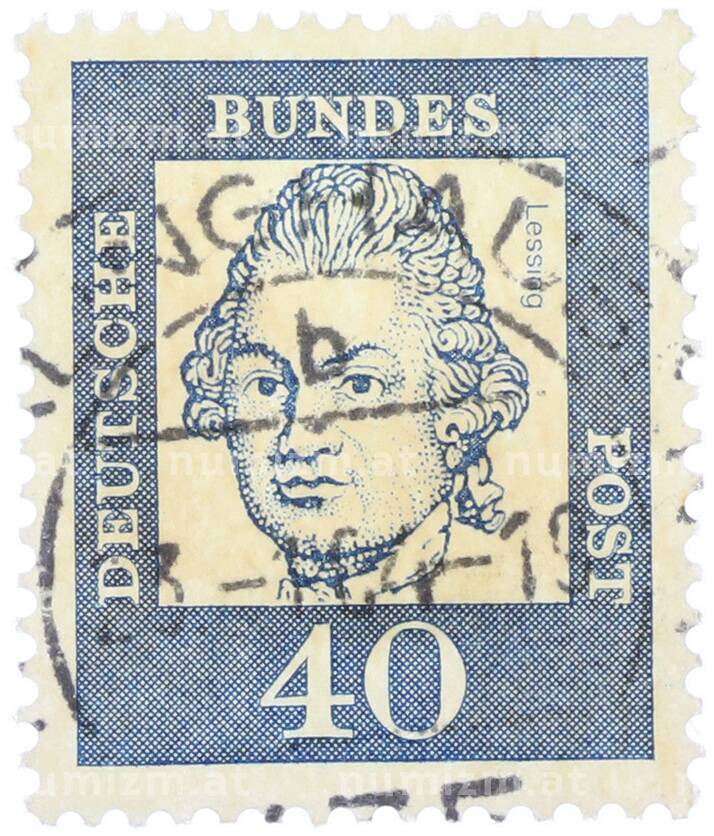 Почтовая марка 40 пфеннигов 1961 года Западная Германия (ФРГ) «Выдающиеся немцы — Готхольд Эфраим Лессинг» (Артикул: T11-37487): подробные характеристики, качественные фотографии в высоком разрешении, низкая цена.