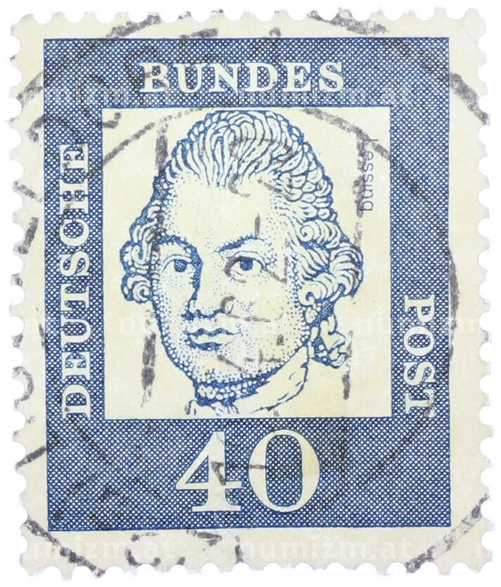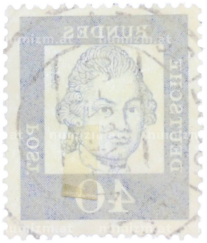 Интернет магазин «Нумизмат» предлагает приобрести Почтовая марка 40 пфеннигов 1961 года Западная Германия (ФРГ) «Выдающиеся немцы — Готхольд Эфраим Лессинг».