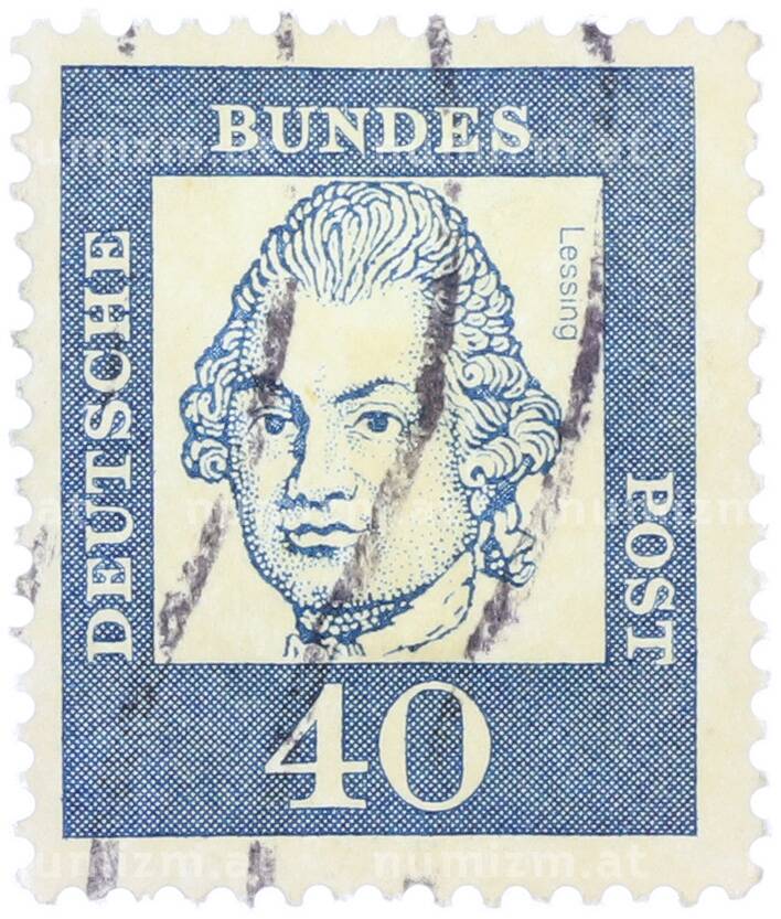 Почтовая марка 40 пфеннигов 1961 года Западная Германия (ФРГ) «Выдающиеся немцы — Готхольд Эфраим Лессинг» (Артикул: T11-37490): подробные характеристики, качественные фотографии в высоком разрешении, низкая цена.