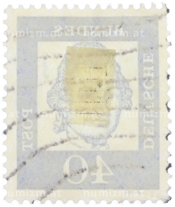 Интернет магазин «Нумизмат» предлагает приобрести Почтовая марка 40 пфеннигов 1961 года Западная Германия (ФРГ) «Выдающиеся немцы — Готхольд Эфраим Лессинг».