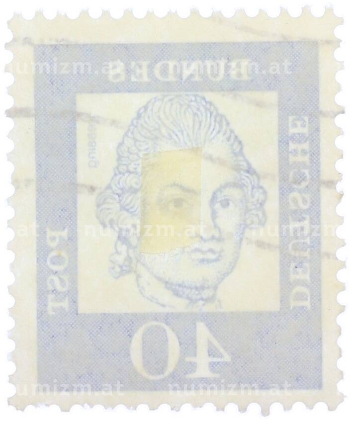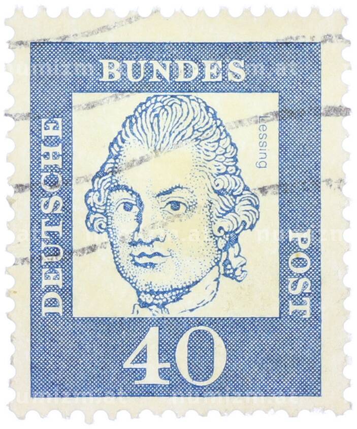 Почтовая марка 40 пфеннигов 1961 года Западная Германия (ФРГ) «Выдающиеся немцы — Готхольд Эфраим Лессинг» (Артикул: T11-37495): подробные характеристики, качественные фотографии в высоком разрешении, низкая цена.
