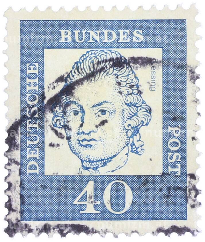 Интернет магазин «Нумизмат» предлагает приобрести Почтовая марка 40 пфеннигов 1961 года Западная Германия (ФРГ) «Выдающиеся немцы — Готхольд Эфраим Лессинг».