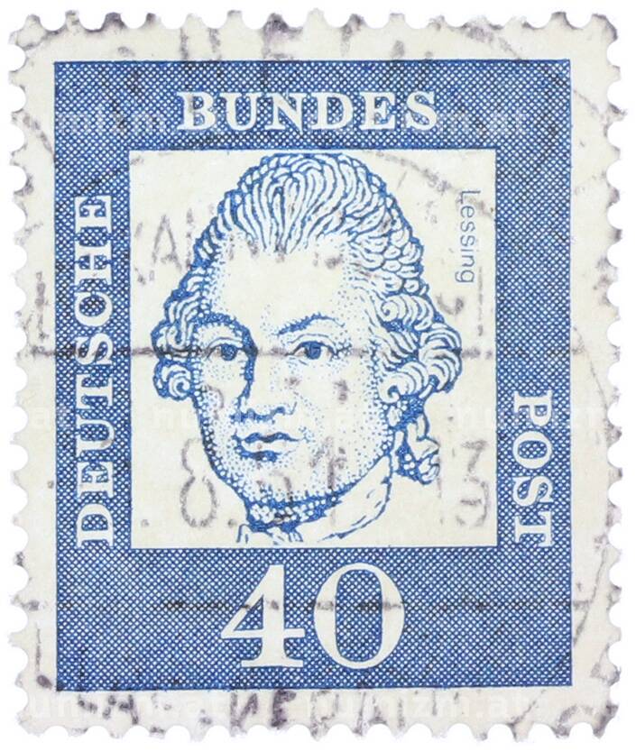 Почтовая марка 40 пфеннигов 1961 года Западная Германия (ФРГ) «Выдающиеся немцы — Готхольд Эфраим Лессинг» (Артикул: T11-37497): подробные характеристики, качественные фотографии в высоком разрешении, низкая цена.