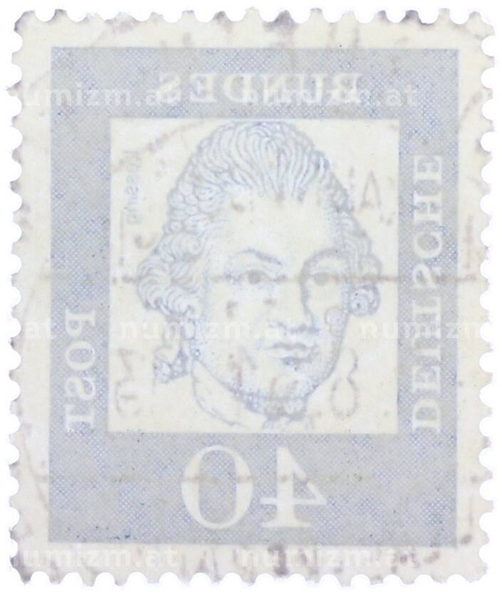 Интернет магазин «Нумизмат» предлагает приобрести Почтовая марка 40 пфеннигов 1961 года Западная Германия (ФРГ) «Выдающиеся немцы — Готхольд Эфраим Лессинг».