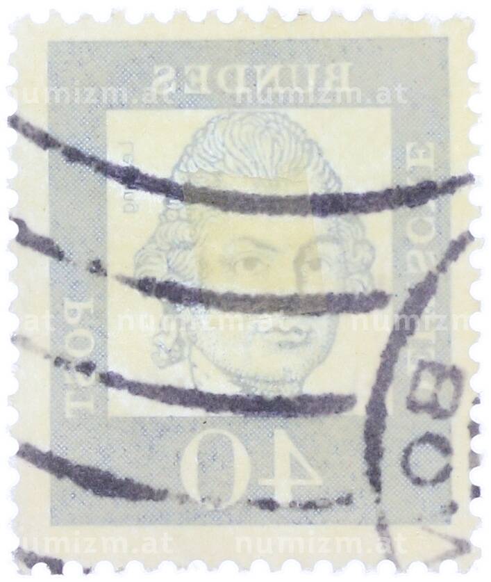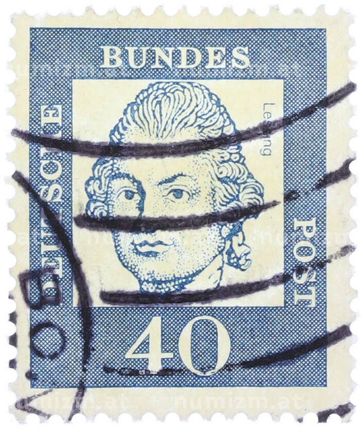 Интернет магазин «Нумизмат» предлагает приобрести Почтовая марка 40 пфеннигов 1961 года Западная Германия (ФРГ) «Выдающиеся немцы — Готхольд Эфраим Лессинг».