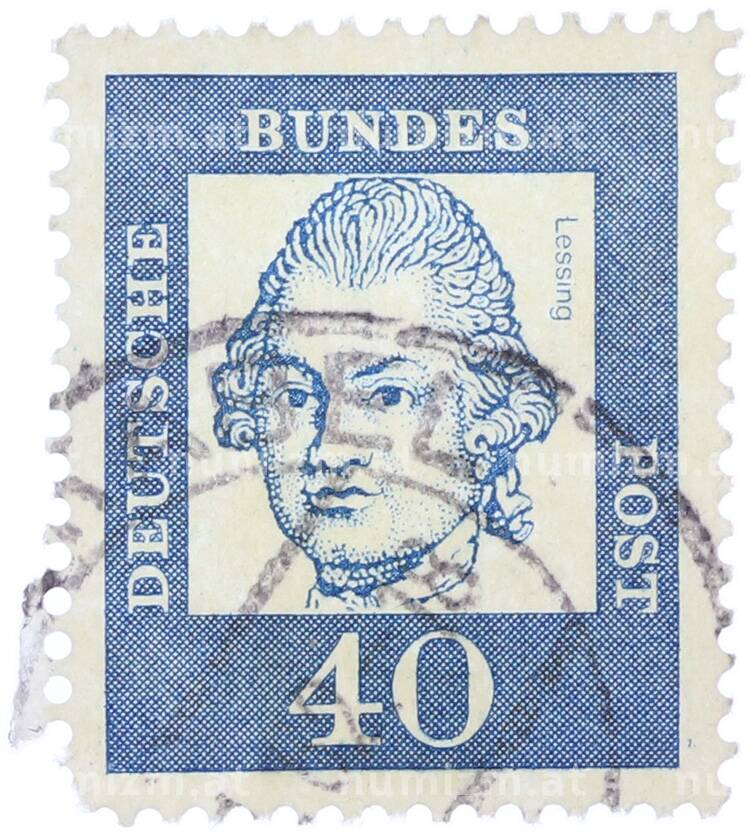 Почтовая марка 40 пфеннигов 1961 года Западная Германия (ФРГ) «Выдающиеся немцы — Готхольд Эфраим Лессинг» (Артикул: T11-37506): подробные характеристики, качественные фотографии в высоком разрешении, низкая цена.