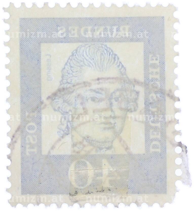 Интернет магазин «Нумизмат» предлагает приобрести Почтовая марка 40 пфеннигов 1961 года Западная Германия (ФРГ) «Выдающиеся немцы — Готхольд Эфраим Лессинг».